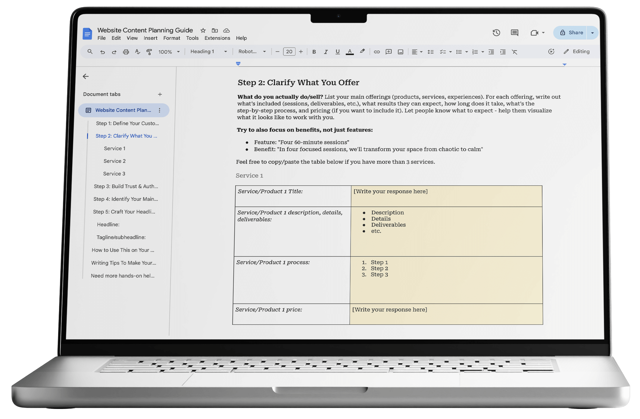 It comes with a step-by-step guide (basically a mini Squarespace crash course), as well as a 6-month Squarespace free trial AND 20% off your Squarespace subscription.