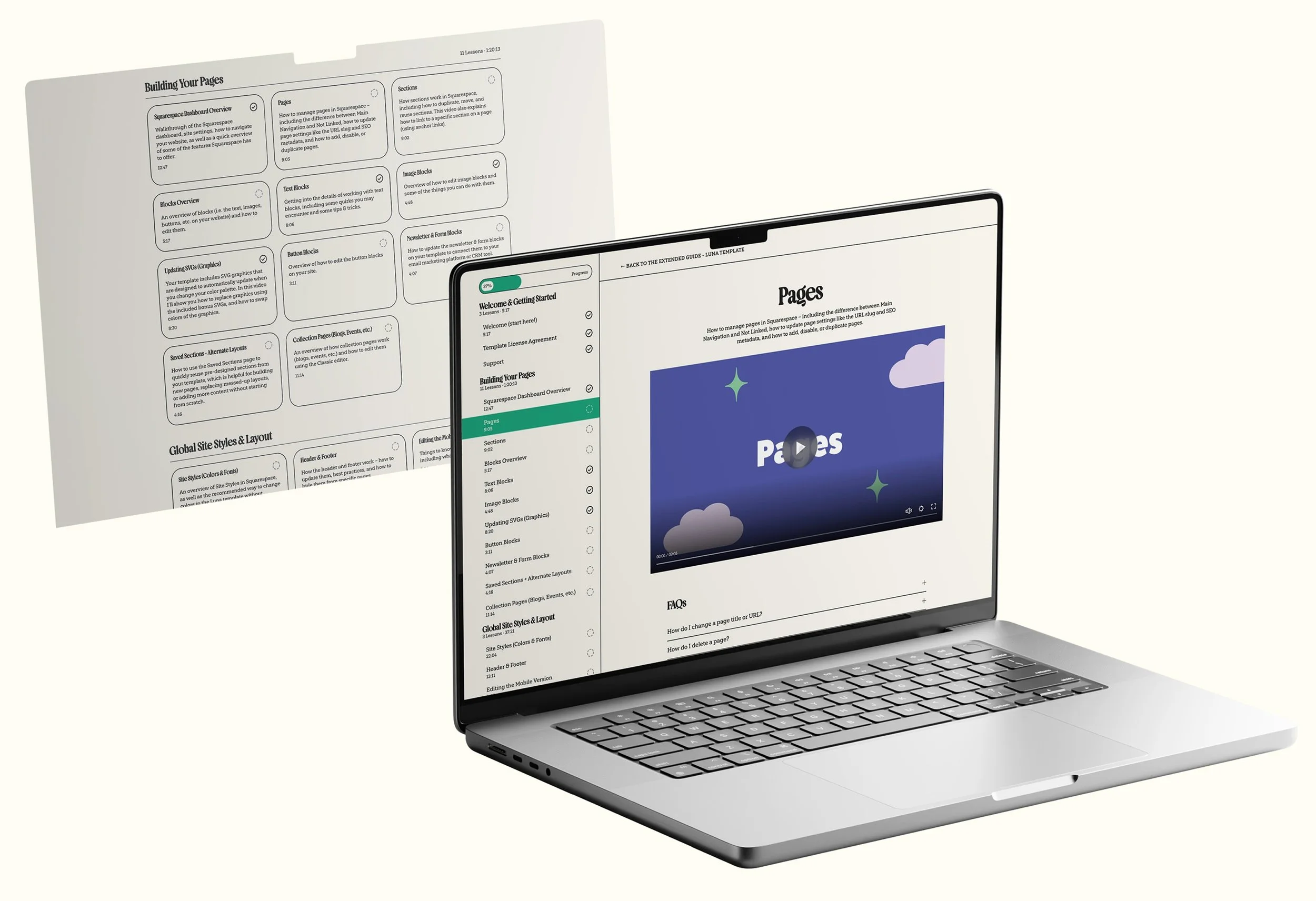 If you instead purchase the Extended Guide package, you’ll get a more comprehensive walkthrough of how to use Squarespace and tips and tricks from a pro designer with many years of experience using Squarespace (over 2 hours of extra video content spread out over 15+ lessons) so that you can customize and manage your site with confidence. To see a more detailed breakdown of the topics covered in the course, check out the section above.